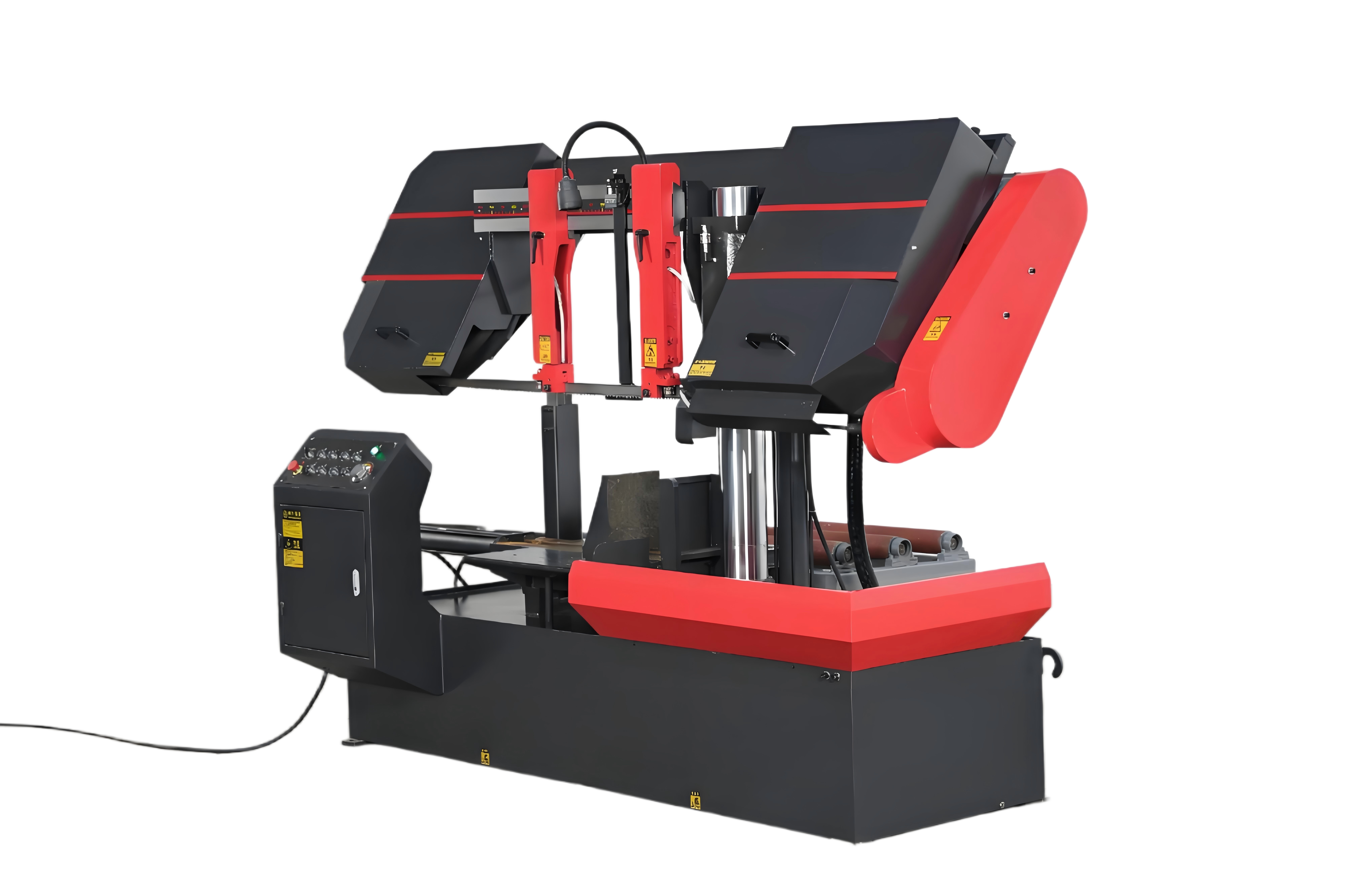 La segatrice è composta da benna da letto, telaio della sega, colonna, dispositivo di trasmissione principale, dispositivo di guida del nastro, dispositivo di tensionamento del nastro, sistema idraulico, sistema di raffreddamento, dispositivo di bloccaggio e altre parti ausiliarie.