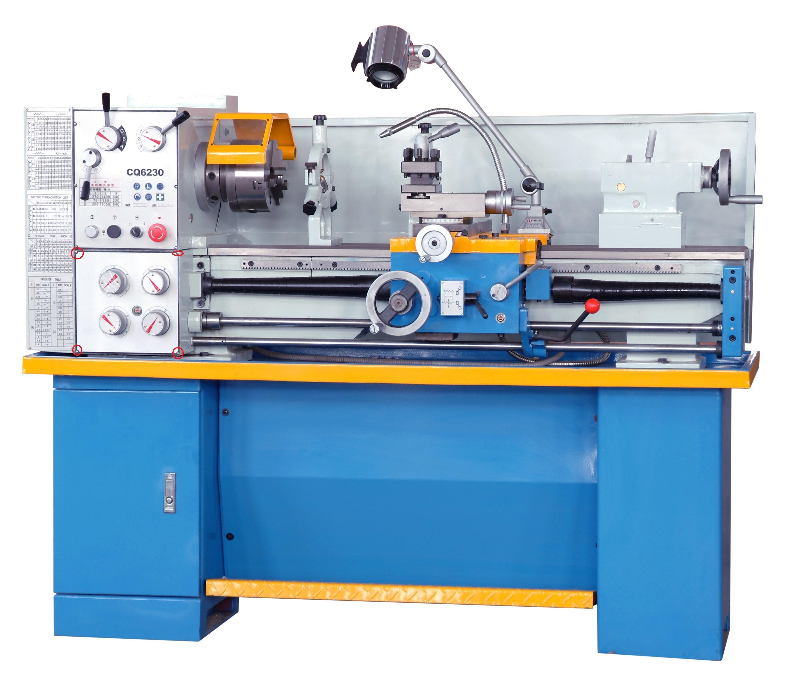 Inoltre, il portautensili a quattro posizioni può ospitare 4 utensili da taglio, il vassoio può ruotare a sinistra e a destra, rendendolo comodo per il taglio di pezzi con forme coniche; la contropunta è supportata da un perno per trattenere il pezzo, garantendo una lavorazione più stabile e può essere utilizzata anche per alberi eccentrici, regolazione della precisione assiale, taglio di coni lunghi e fori specifici. La casella del percorso utensile è facile da usare e può selezionare varie velocità di avanzamento, rendendola adatta al taglio di varie filettature e, se utilizzata insieme a una rettificatrice per lavorazioni ad alta precisione, la connessione al processo è fluida. Il freno a pedale si ferma rapidamente ed è sicuro. Il pannello per la rimozione dei trucioli consente di raccogliere facilmente i trucioli ed è sufficiente la pulizia manuale; l'armadio di distribuzione dell'alimentazione è dotato di cavi disposti in modo ordinato, che ne facilitano l'ispezione durante la riparazione.