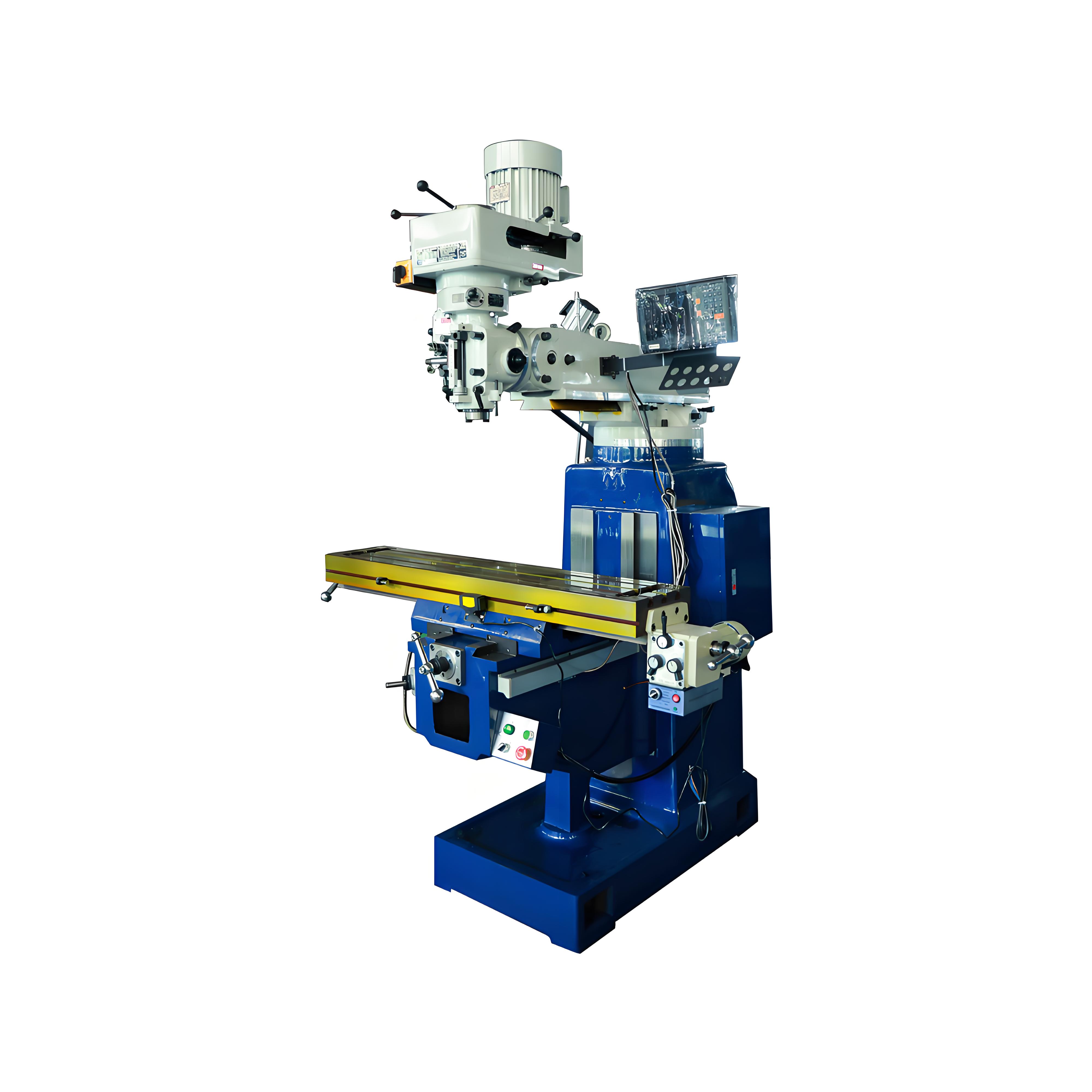 Le caratteristiche del prodotto della fresatrice a torretta dual use Blue sono distinte. Innanzitutto, è funzionalmente flessibile. La testa di fresatura può ruotare a più angolazioni, il braccio orientabile può estendersi e ruotare di 360 gradi e con il mandrino orizzontale opzionale la gamma di lavorazione viene notevolmente ampliata. In secondo luogo, ha una forte stabilità. I componenti chiave come il corpo e il piano di lavoro sono realizzati con materiali ad alta resistenza e sottoposti a trattamento di invecchiamento, mentre le guide e l'albero principale sono lavorati con precisione per garantire precisione e durata a lungo termine. In terzo luogo, è facile da usare. Supporta l'alimentazione manuale e automatica e può essere dotato di display digitale a tre assi e seguiutensile per ridurre le difficoltà operative migliorando al contempo l'efficienza di lavorazione.